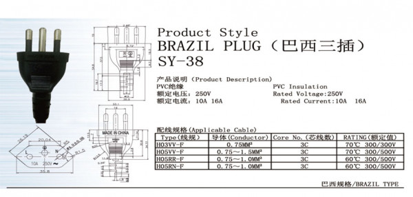 Product style BRAZIL PLUG SY-38