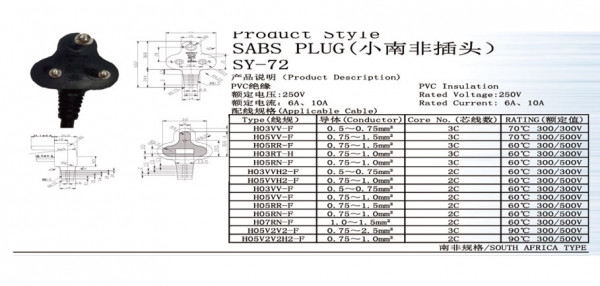 TAIWAN Product style TAIWAN SABS PLUG SY-72