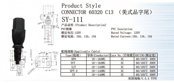 UL Product style CONNECTOP 60320 C13 SY-111