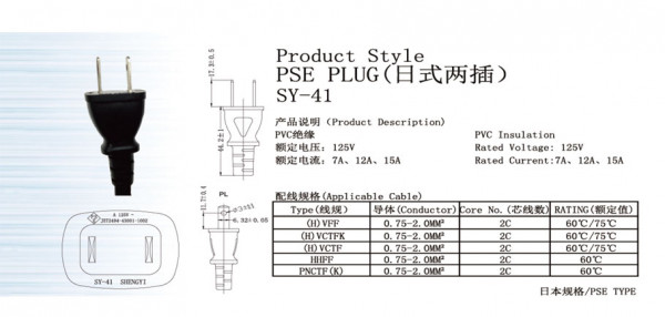 JAPAN Product style PSE PLUG SY-41