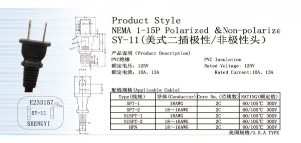 UL Product style NAME 1-15P Polarized & Non-poarize SY-11