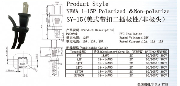 UL Product style NAME 5-15P Porarize & Non-polarize SY-15
