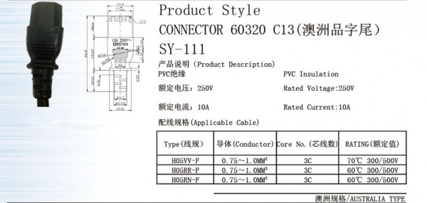 AUSTRALLA Product style CONNECTOR 60320 C13 SY-111