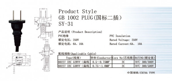 CHINA Product style GB 1002 PLUG SY-31
