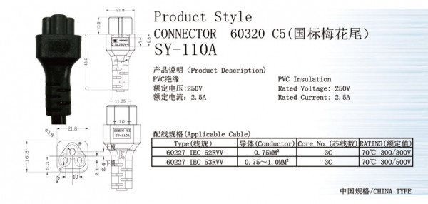 Product style GB CONNECTOR 60320 C5 SY-110A