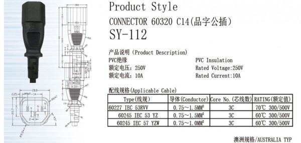 CHINA Product style CONNECTOR 30320 C14 SY-112