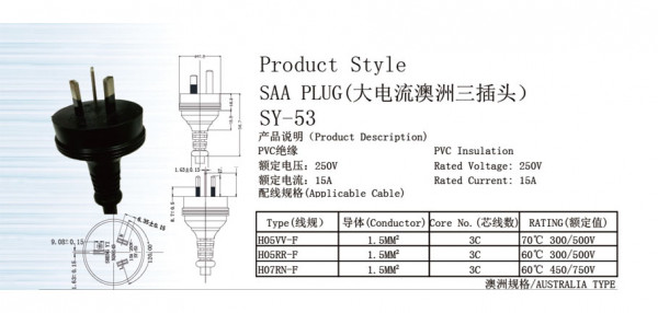 AUSTRALLA Product style SAA PLUG SY-53